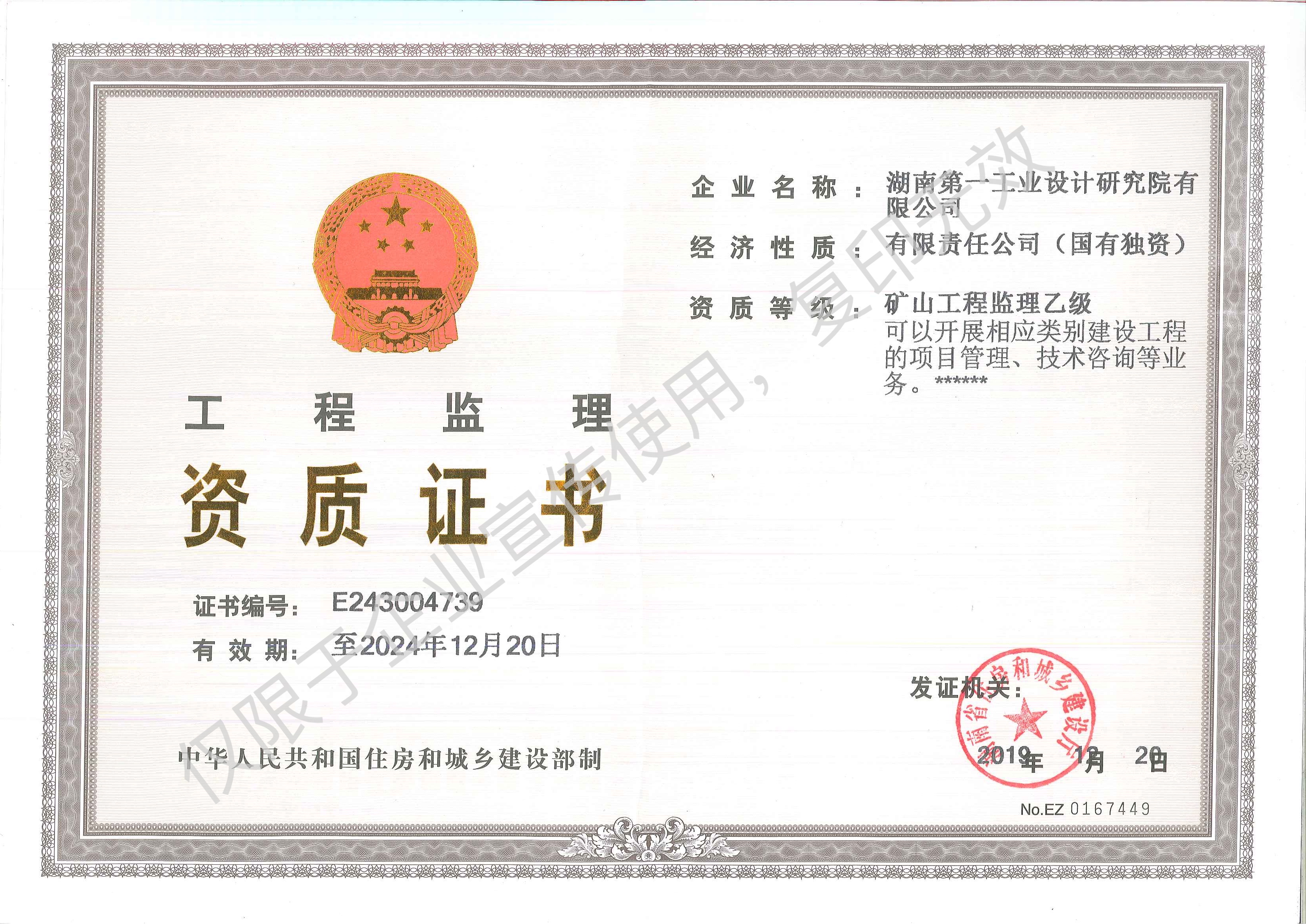 工程監理企業資質證書